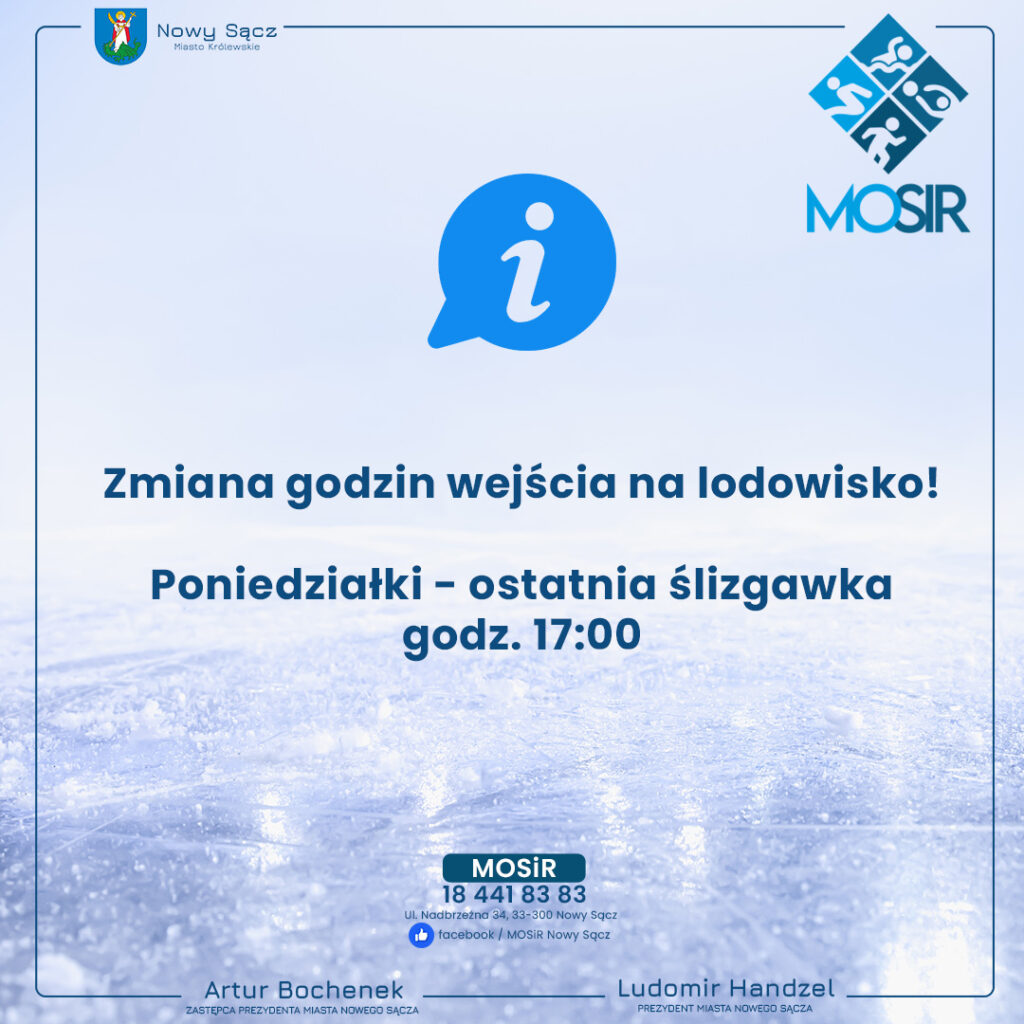 Czytaj dalej...W poniedziałki ostatnia ślizgawka godz. 17.00 Szczegółowy harmonogram ślizgawek dostępny pod linkiem