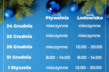 5 grudnia w godzinach od 8 do 13 niecka sportowa będzie zarezerwowana na organizację zawodów pływackich – Pływackie mikołajki. Zgłoszenia do 02.12.2025 Zapisy: Godzina/Kategorie: